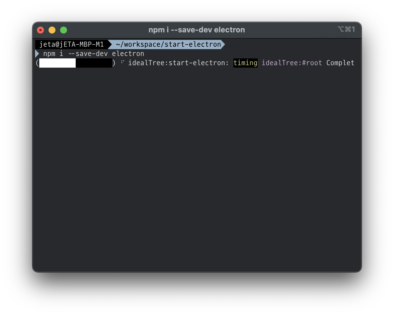 초기 설정이 완료된 후 아래 명령어로 Electron 의존성을 추가합니다.