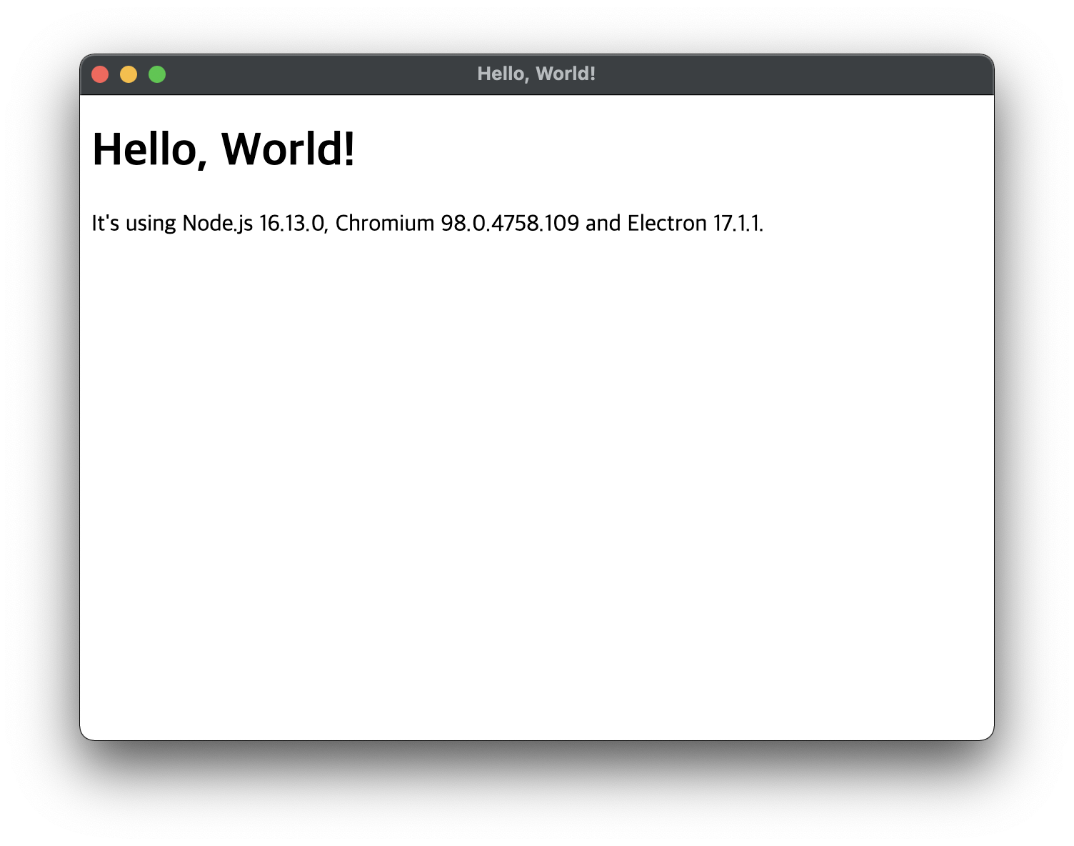 Electron은 JavaScript와 HTML, CSS를 이용해 Desktop Application을 제작할 수 있는 프레임워크입니다. Chromium과 Node.js를 바이너리에 내장하여, Electron은 하나의 JavaScript 코드로 Windows와 macOS, Linux에서 모두 작동할 수 있는 크로스 플랫폼 App을 만들 수 있도록 도와줍니다. Native app 개발 경험이 필요하지 않죠.
