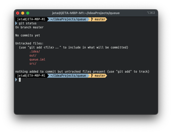 설정을 적용한 후 다시 상태를 확인해보면 .idea 디렉토리가 제외된 것을 확인할 수 있습니다.