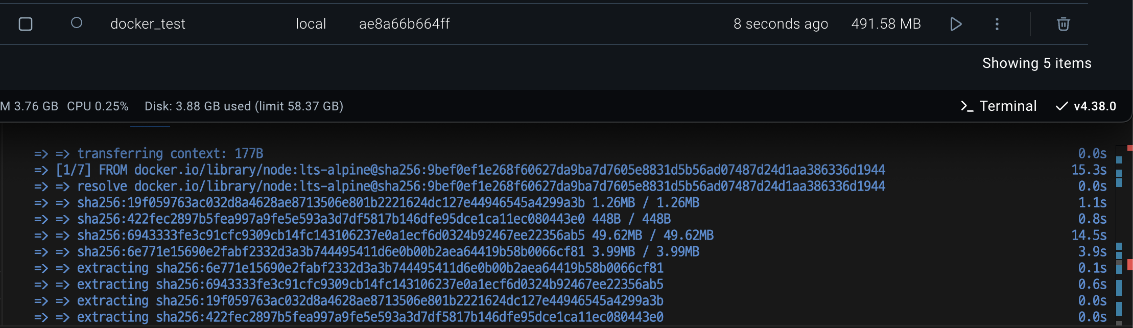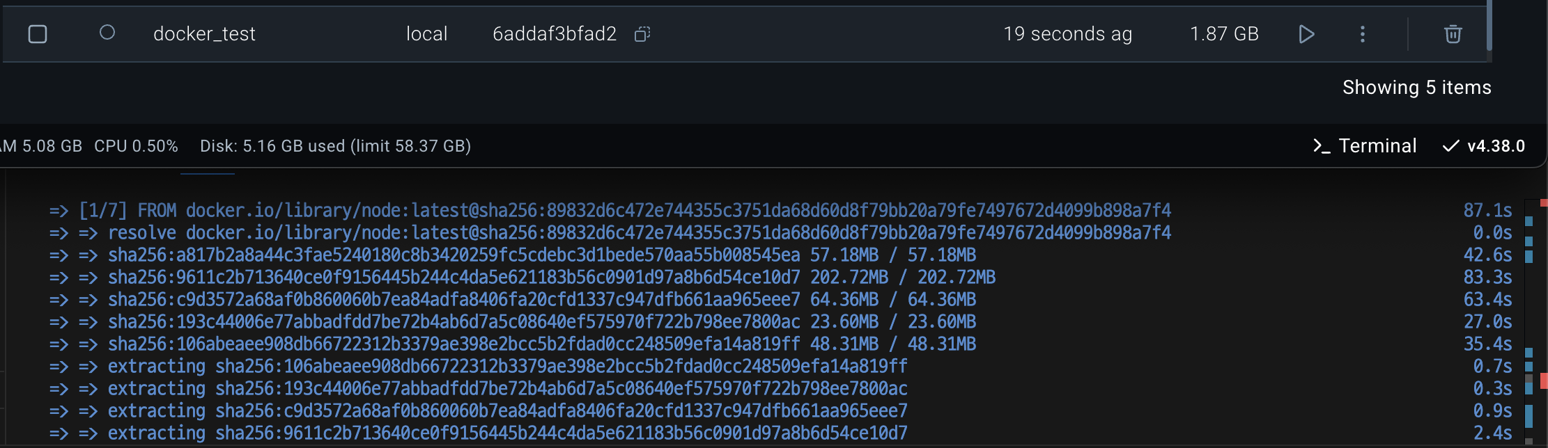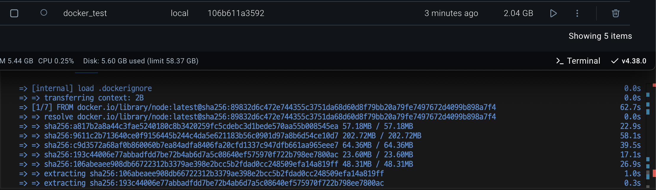 build 단계에서는 node 이미지를 다운로드 받아 build를 수행하고,