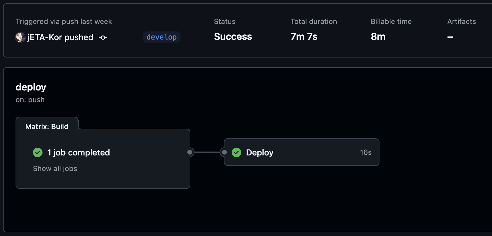 develop 브랜치인 경우 빌드 테스트만 하도록 설정할 수 있습니다.