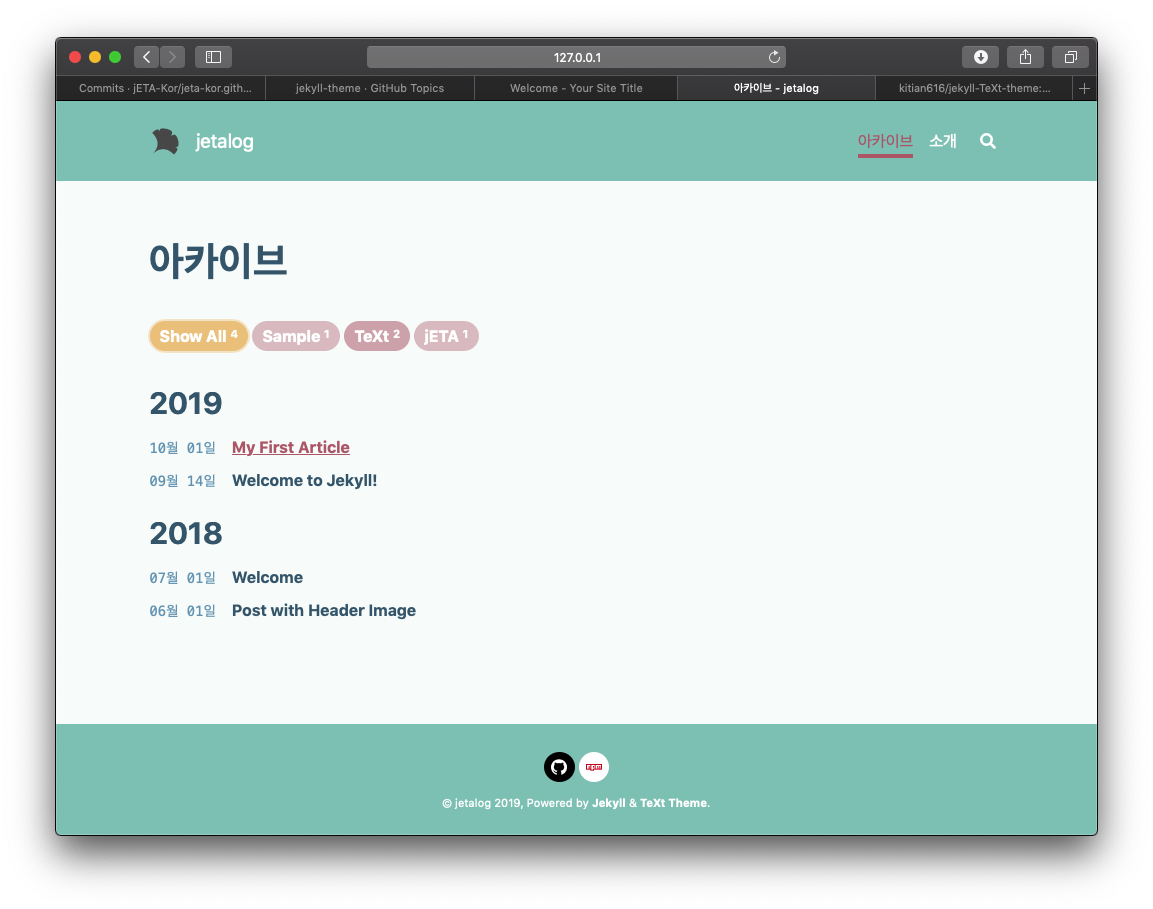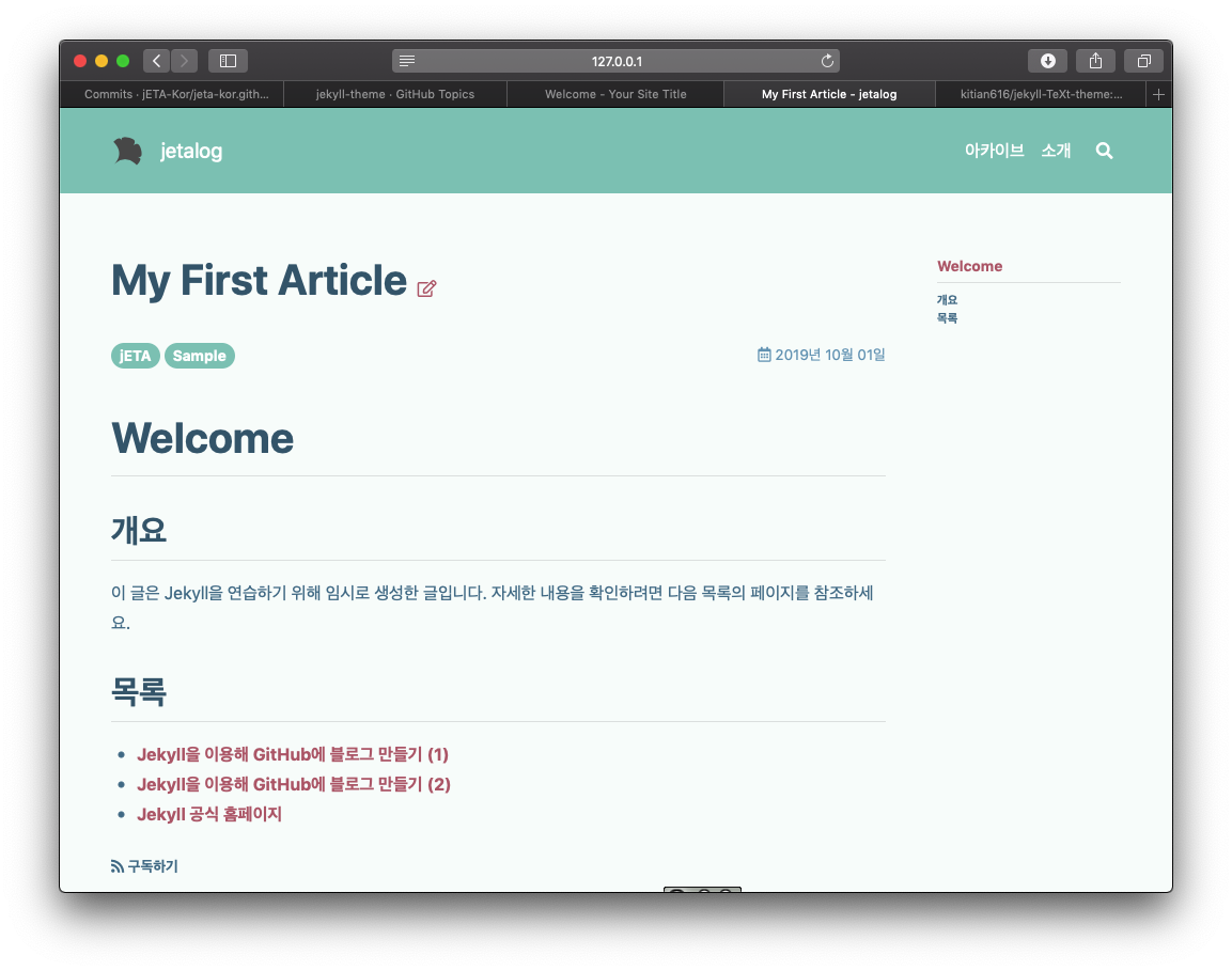 - [Jekyll을 이용해 GitHub에 블로그 만들기 (2)](https://jetalog.net/87)