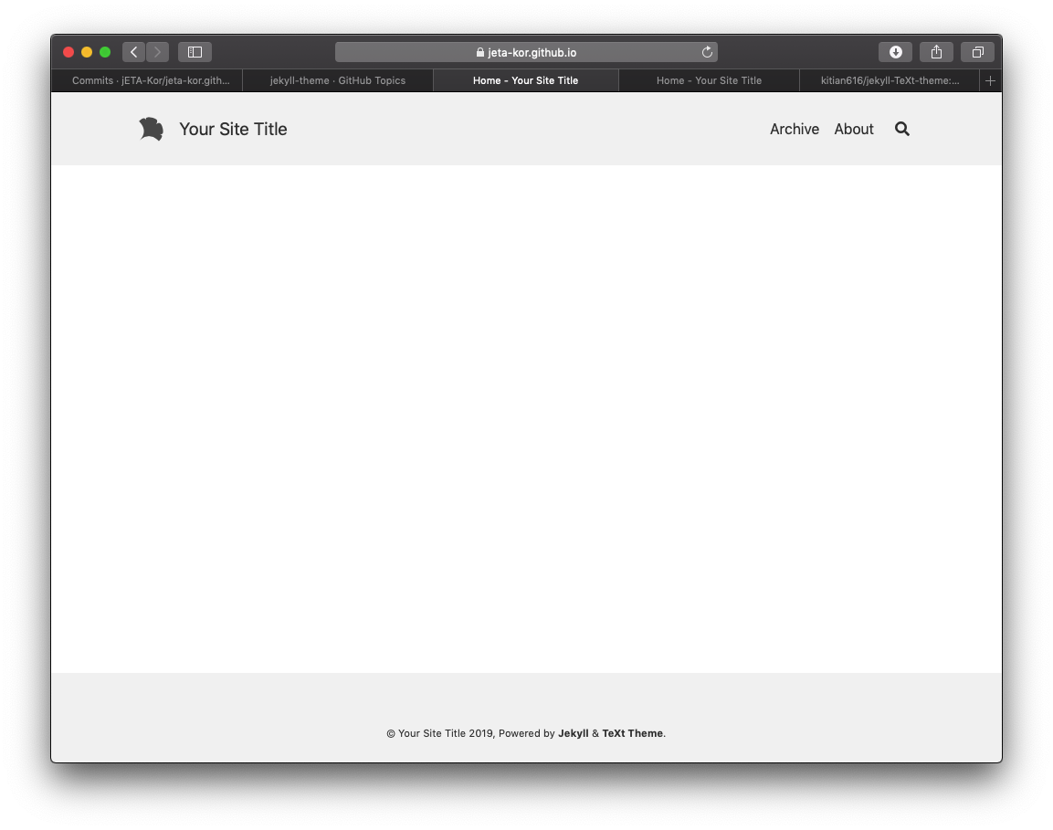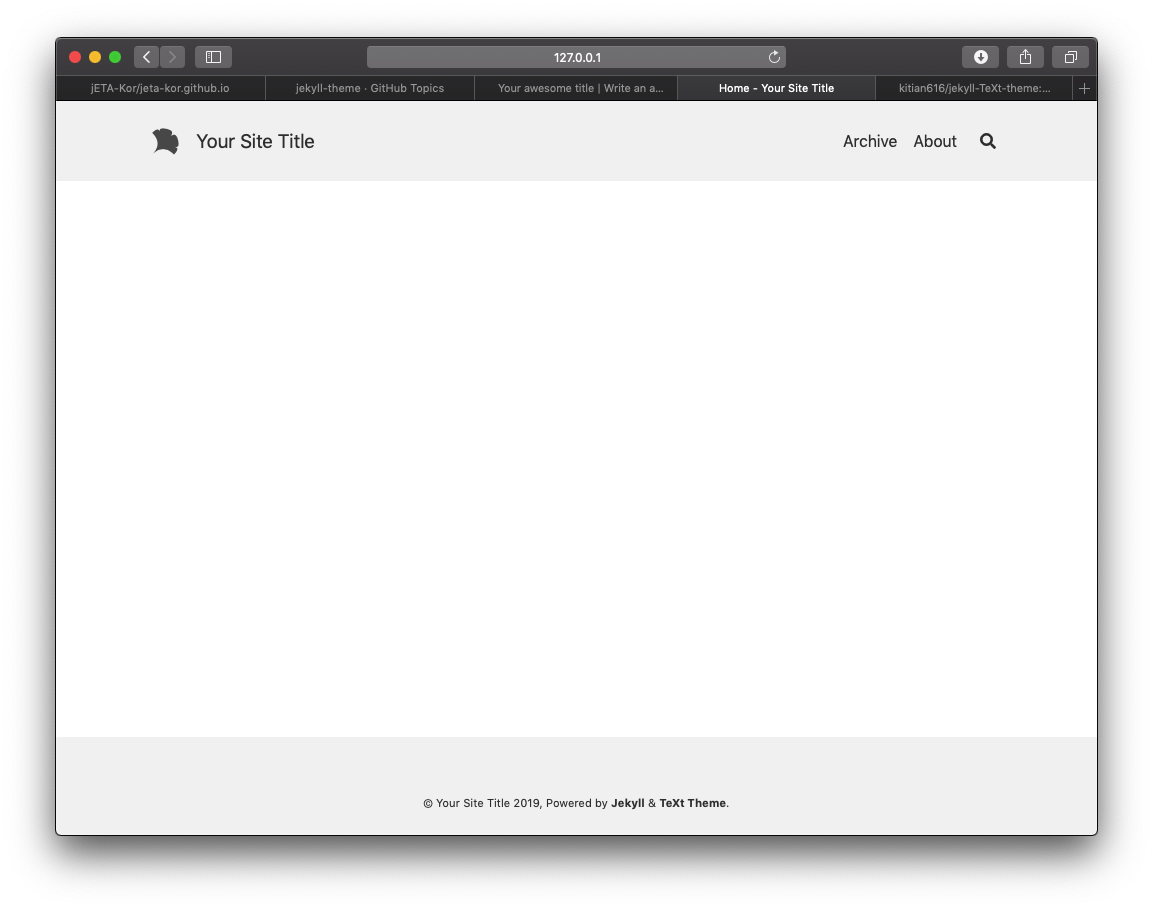 처음 Jekyll을 실행하면 심플한 기본 테마의 페이지를 보여줍니다. 기본 테마도 이미 충분히 훌륭합니다. 만약 기본 테마가 맘에 든다면 이번 단계는 건너 뛰어도 됩니다. 하지만 새로운 테마를 적용하고 싶다면, 아래 몇 가지 단계를 거쳐서 손쉽게 테마를 변경할 수 있습니다.