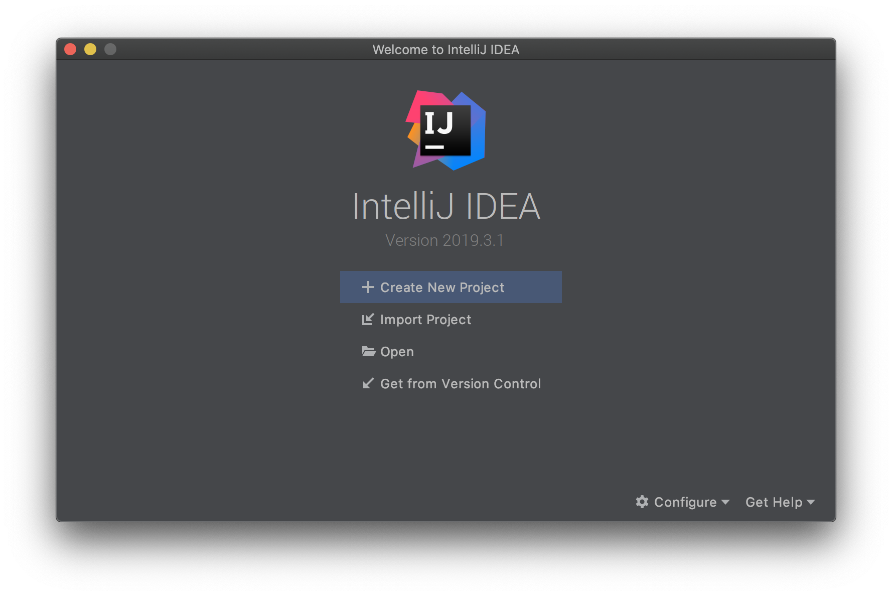 IntelliJ를 실행하고, Create New Project 버튼을 선택합니다.