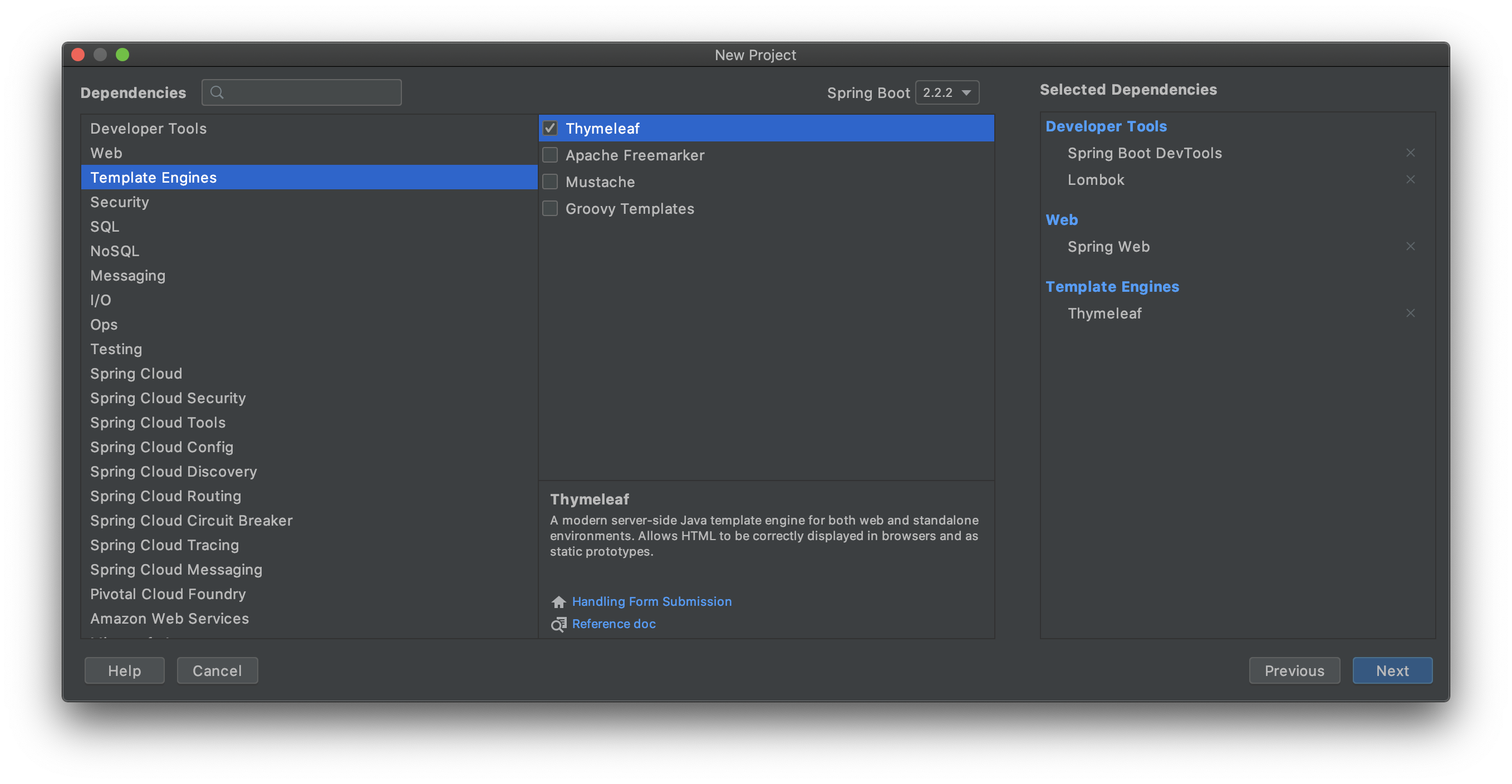 - Template Engines > Thymeleaf: Server-side Java 템플릿 엔진입니다. 간편하게 동적 웹페이지를 구현할 수 있습니다.