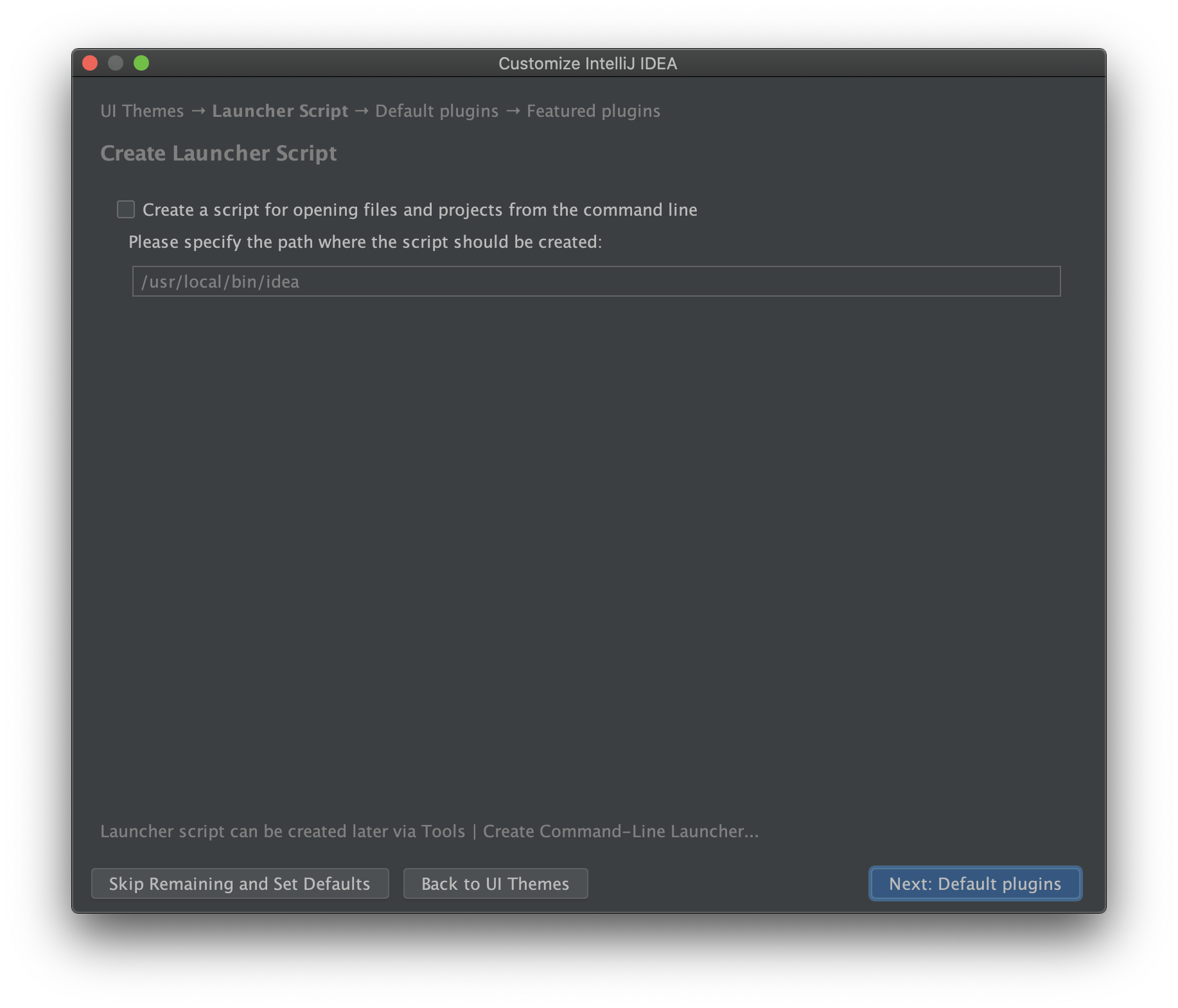 Shell에서 IntelliJ를 실행할 수 있도록 스크립트를 생성할지 여부입니다.