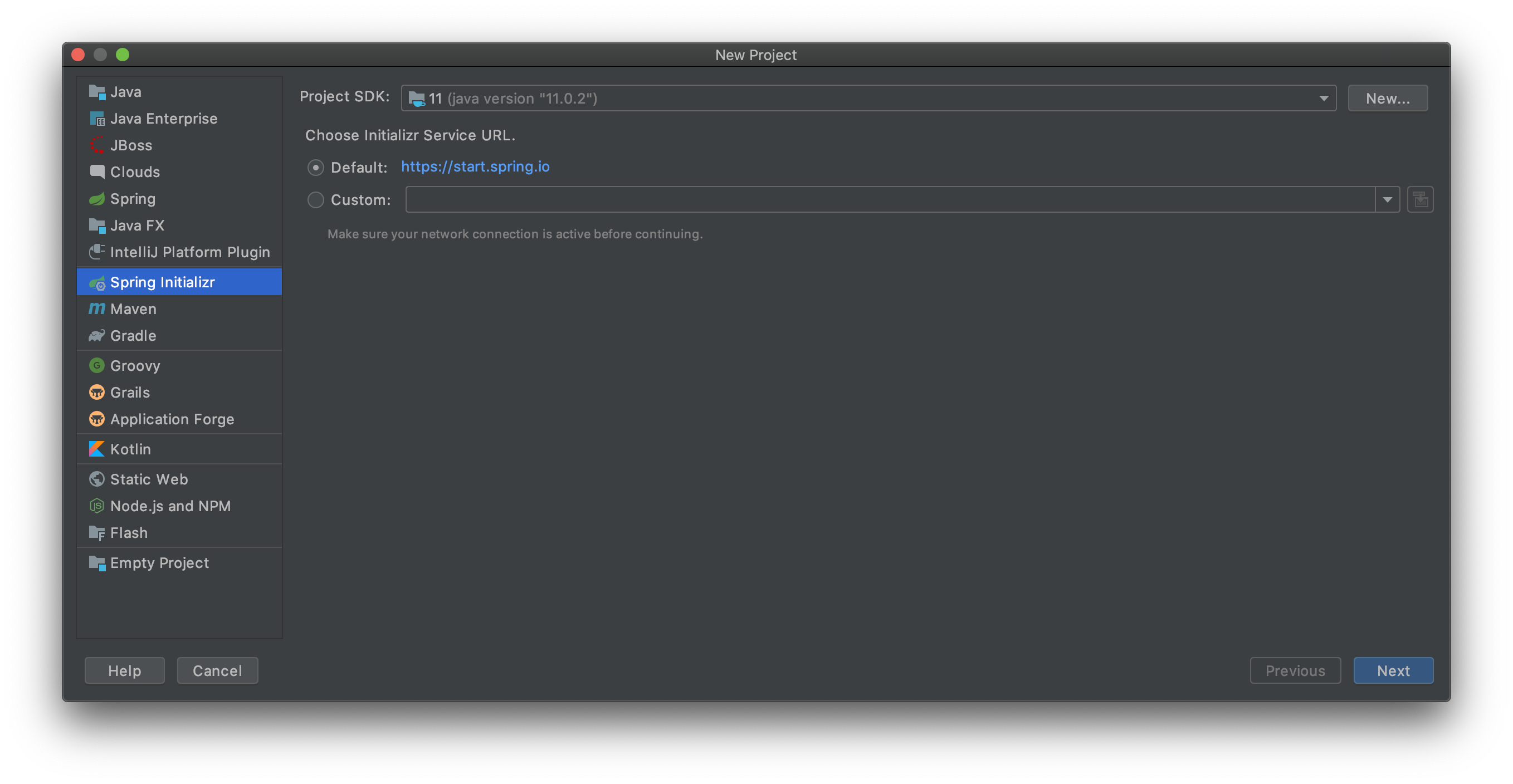 좌측 프로젝트 유형에서 Spring Initializr를 선택하고 Next를 누릅니다.