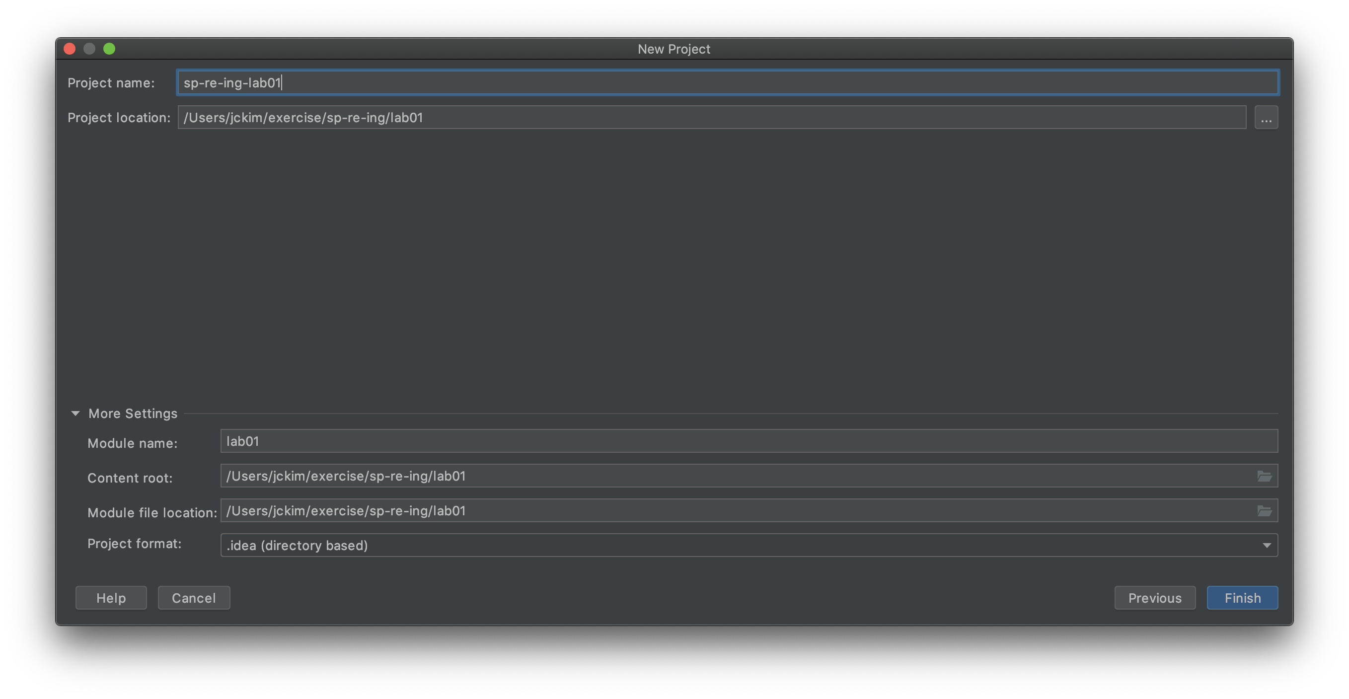 프로젝트 이름과 저장 경로를 지정합니다.