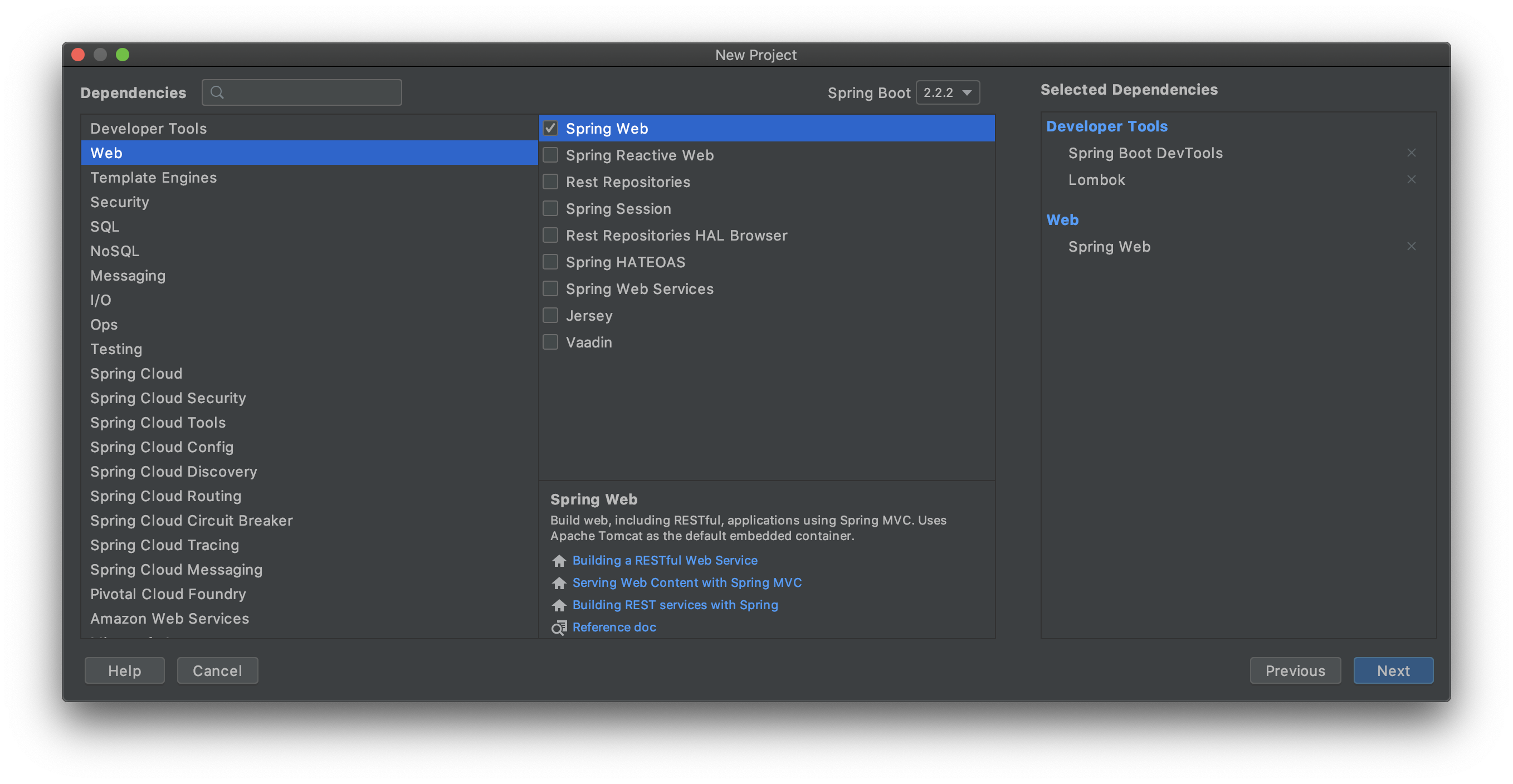 Thymeleaf는 빼고 아래 세 패키지에 대한 의존성만 추가합니다.