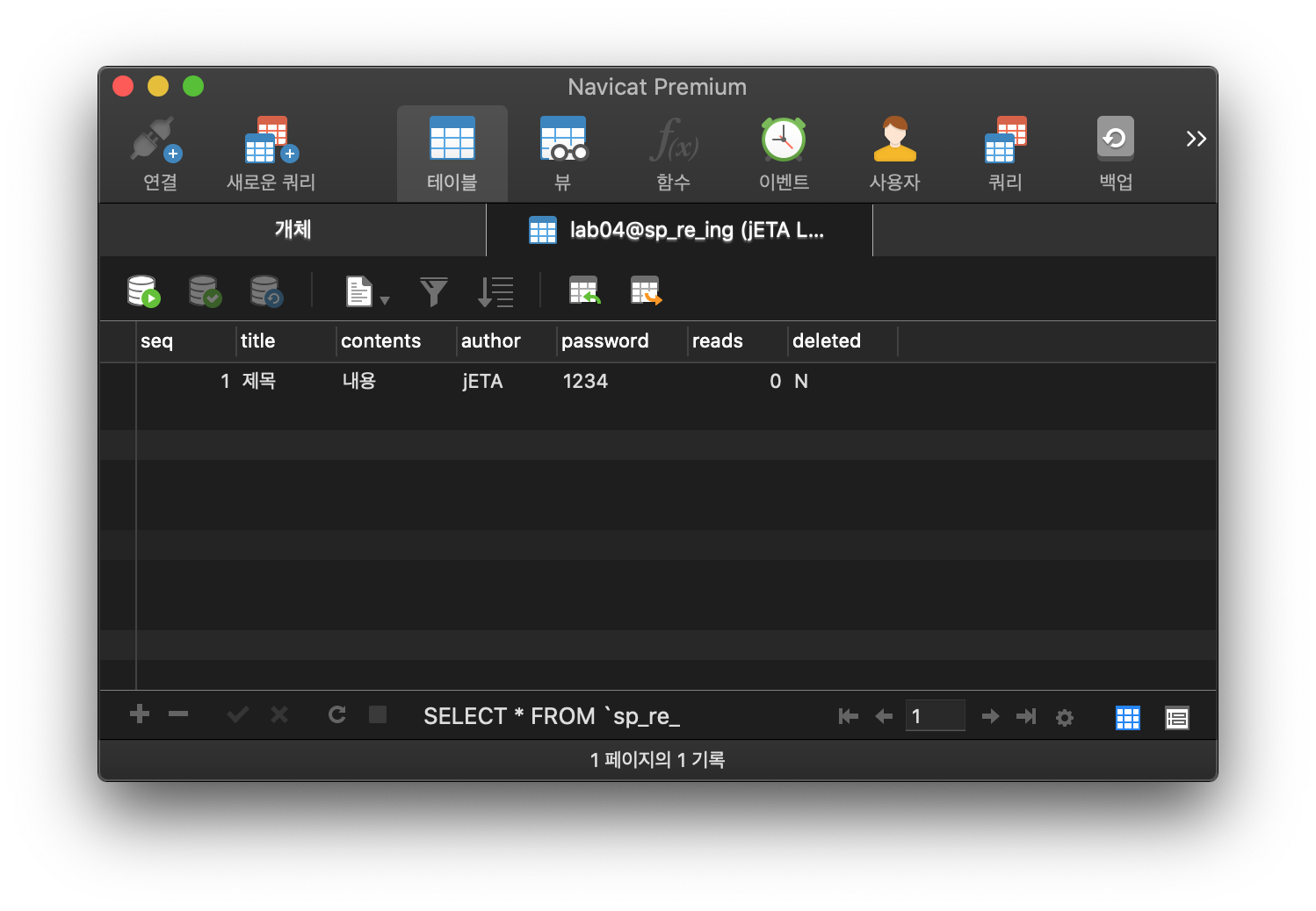 Sp-re-ing 시리즈는 Spring Boot가 주제이기 때문에 DB를 다루는 내용은 최소화하려고 합니다.