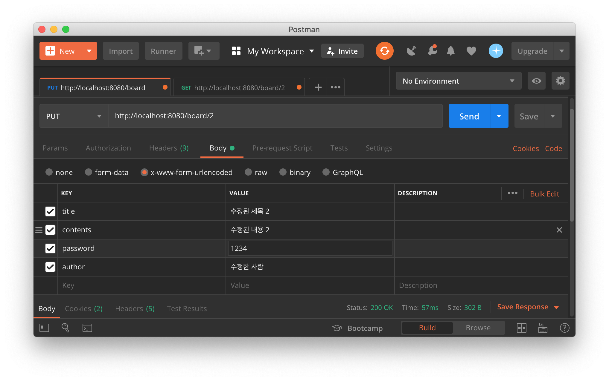 게시물 수정까지 진행하면 게시판 API의 핵심은 모두 진행했다고 봐도 무방합니다!
