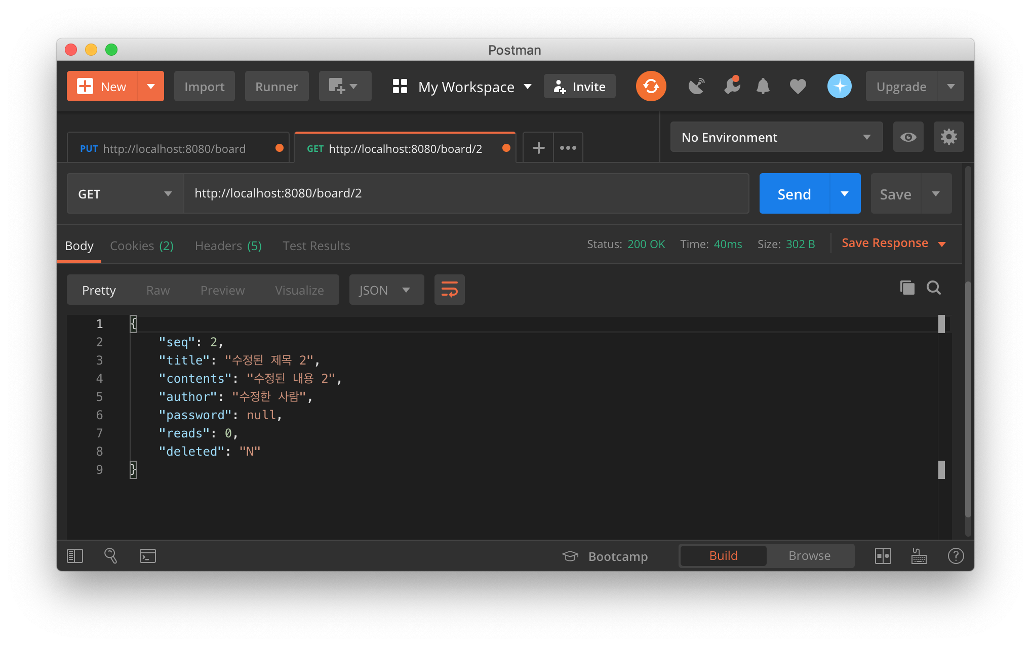 이제 게시글을 다시 호출하면 정상적으로 수정된 것을 확인할 수 있습니다.