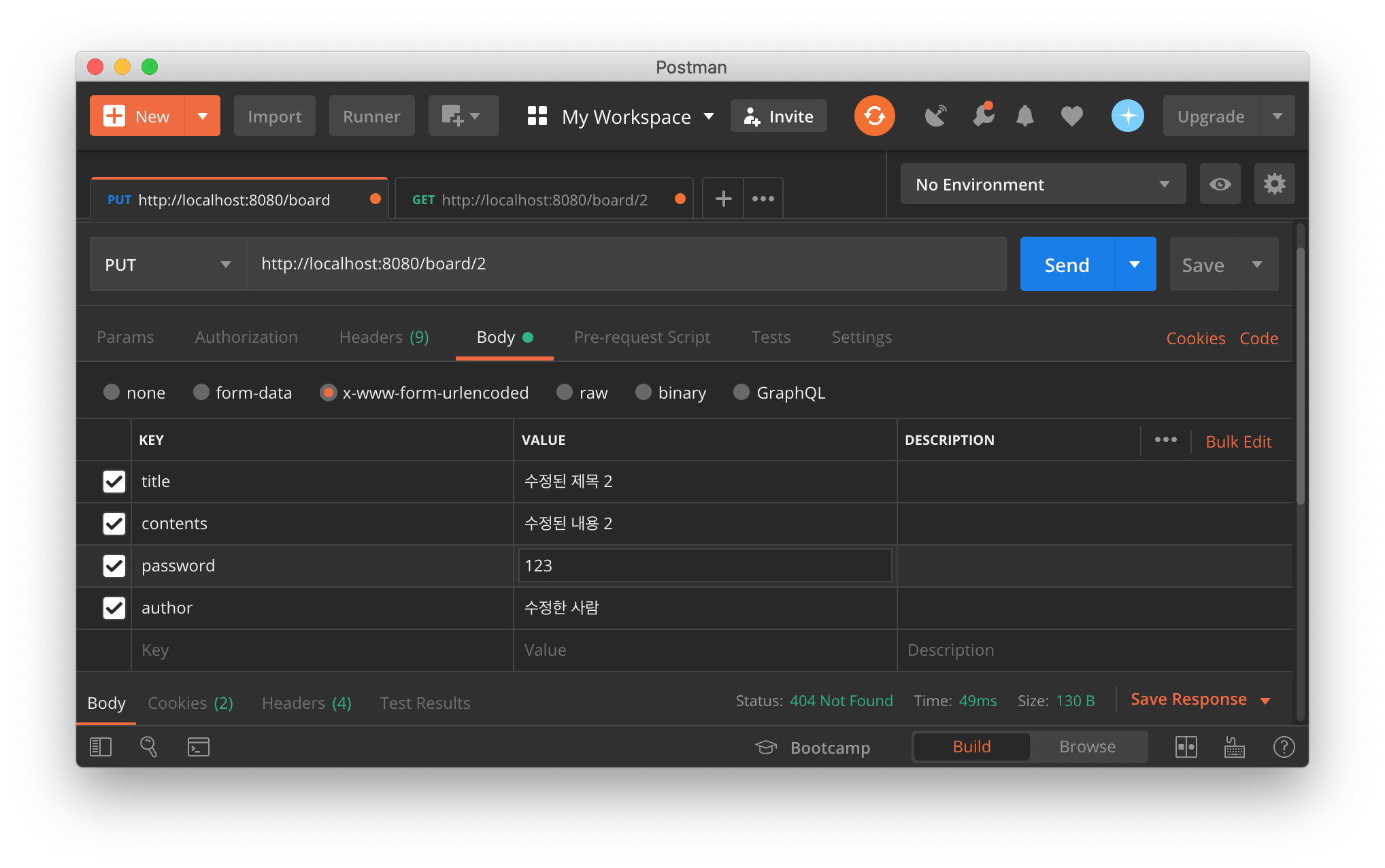 이제 수정할 글 내용을 입력해서 수정을 요청해봅니다.
